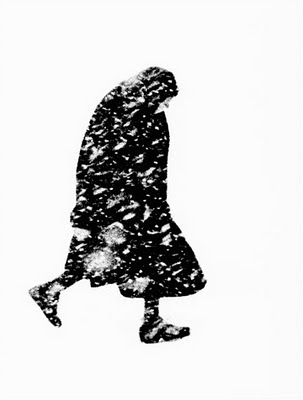Old woman in a snowstorm